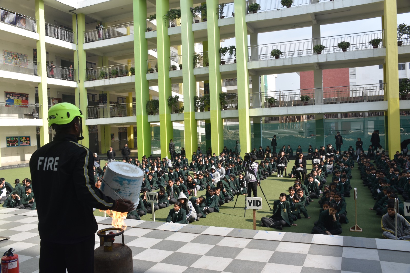 कार्यक्रम के अंतर्गत फायर एक्स्टिंग्विशर के सही उपयोग का लाइव प्रदर्शन भी किया गया, जिससे विद्यार्थियों को प्राथमिक अग्निशमन तकनीकों का व्यावहारिक अनुभव प्राप्त हुआ। इसके पश्चात आयोजित फायर ड्रिल अभ्यास में विद्यार्थियों ने अनुशासन एवं सतर्कता के साथ सुरक्षित निकास मार्गों का प्रयोग करते हुए निर्धारित स्थानों तक पहुँचने का अभ्यास किया।